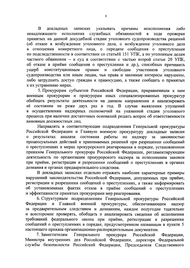 "ОБ УСИЛЕНИИ ПРОКУРОРСКОГО НАДЗОРА И ВЕДОМСТВЕННОГО КОНТРОЛЯ ЗА ЗАКОННОСТЬЮ ПРОЦЕССУАЛЬНЫХ ДЕЙСТВИЙ И ПРИНИМАЕМЫХ РЕШЕНИЙ ОБ ОТКАЗЕ В ВОЗБУЖДЕНИИ УГОЛОВНОГО ДЕЛА ПРИ РАЗРЕШЕНИИ СООБЩЕНИЙ О ПРЕСТУПЛЕНИЯХ"