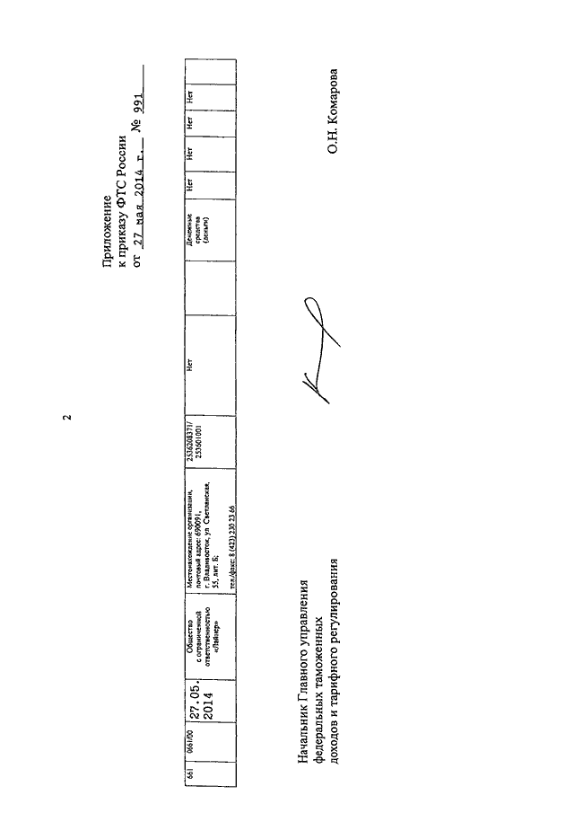 ПРИКАЗ ФТС РФ от 27.05.2014 N 991