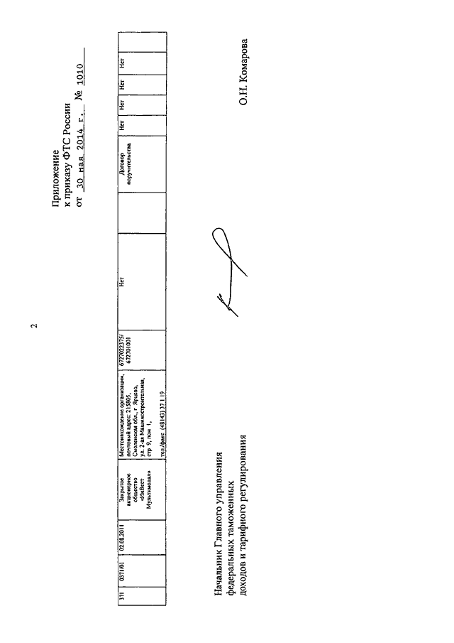 ПРИКАЗ ФТС РФ от 30.05.2014 N 1010