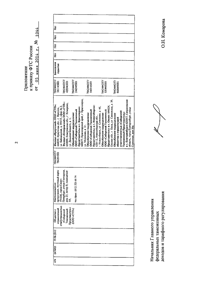 ПРИКАЗ ФТС РФ от 05.06.2014 N 1044