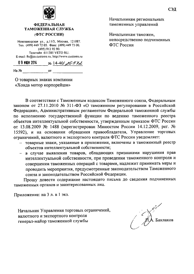 ПИСЬМО ФТС РФ от 09.06.2014 N 14-40/26572