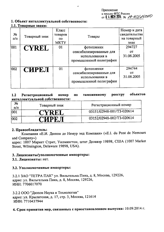 ПИСЬМО ФТС РФ от 04.06.2014 N 14-40/26030