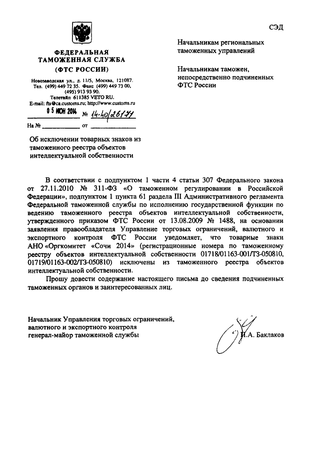 ПИСЬМО ФТС РФ от 05.06.2014 N 14-40/26171