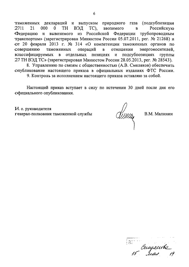 ПРИКАЗ ФТС РФ от 14.05.2014 N 881
