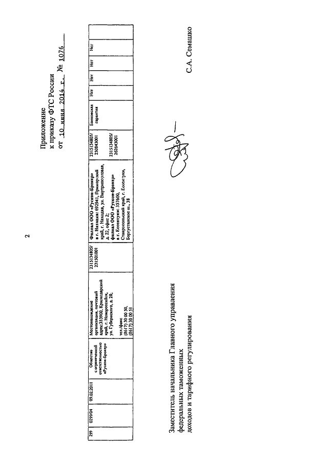 ПРИКАЗ ФТС РФ от 10.06.2014 N 1076