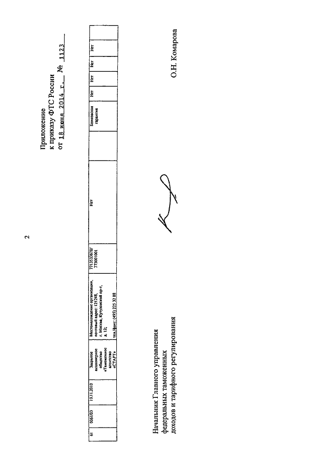 ПРИКАЗ ФТС РФ от 18.06.2014 N 1123