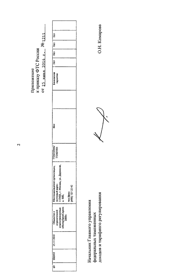 ПРИКАЗ ФТС РФ от 25.06.2014 N 1211