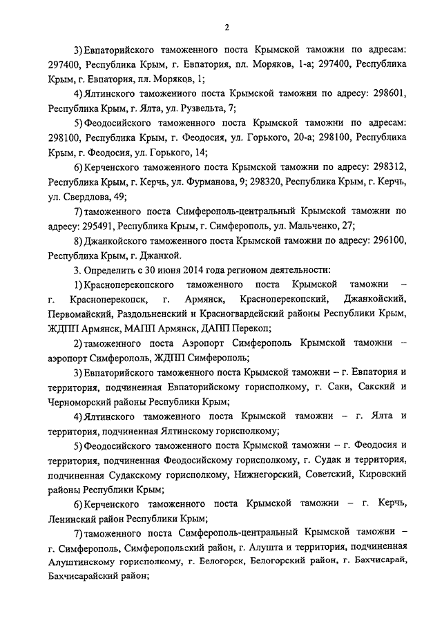 "О СОЗДАНИИ ТАМОЖЕННЫХ ПОСТОВ В СТРУКТУРЕ КРЫМСКОЙ ТАМОЖНИ"