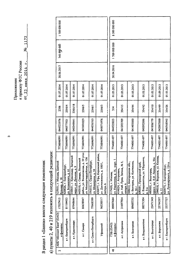 ПРИКАЗ ФТС РФ от 23.06.2014 N 1172
