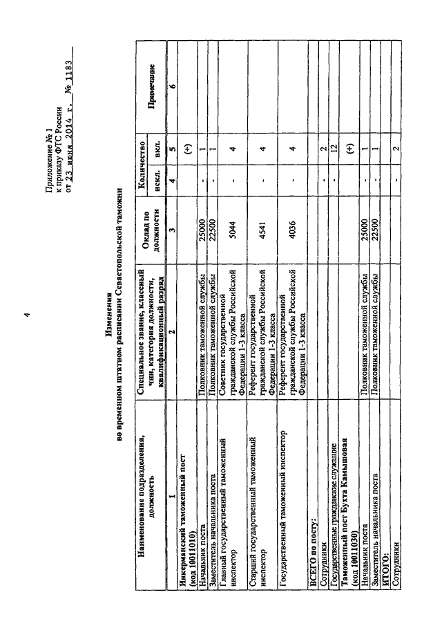 ПРИКАЗ ФТС РФ от 23.06.2014 N 1183