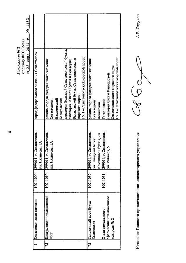 ПРИКАЗ ФТС РФ от 23.06.2014 N 1183