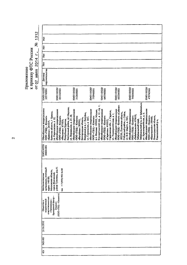 ПРИКАЗ ФТС РФ от 07.07.2014 N 1312