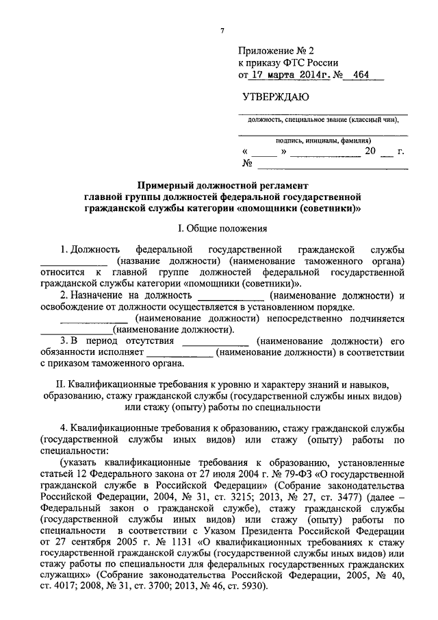 ПРИКАЗ ФТС РФ от 17.03.2014 N 464