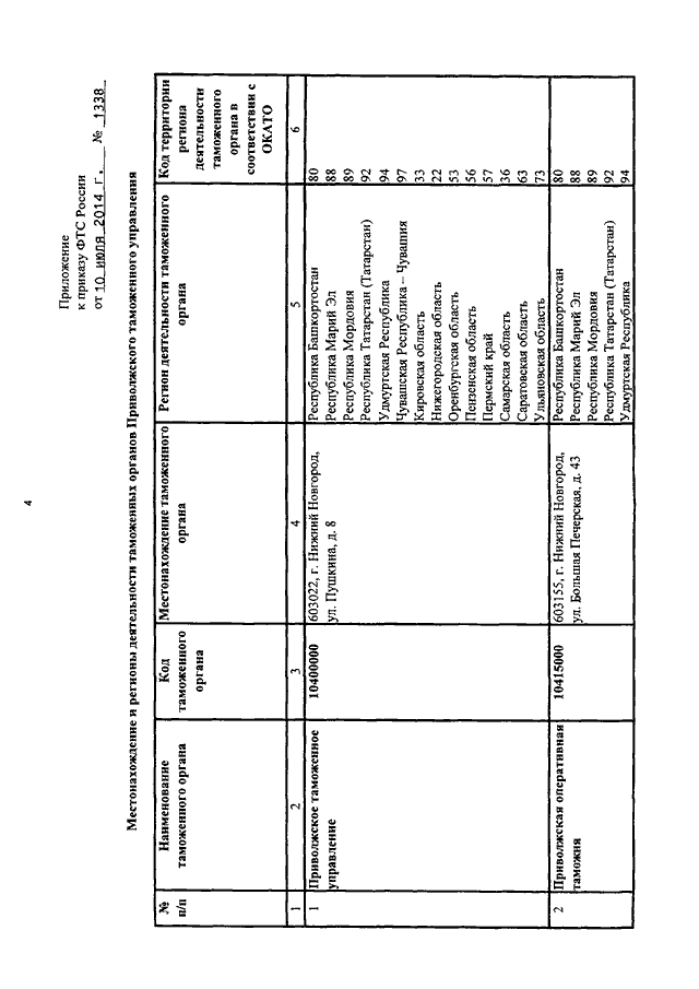 ПРИКАЗ ФТС РФ от 10.07.2014 N 1338