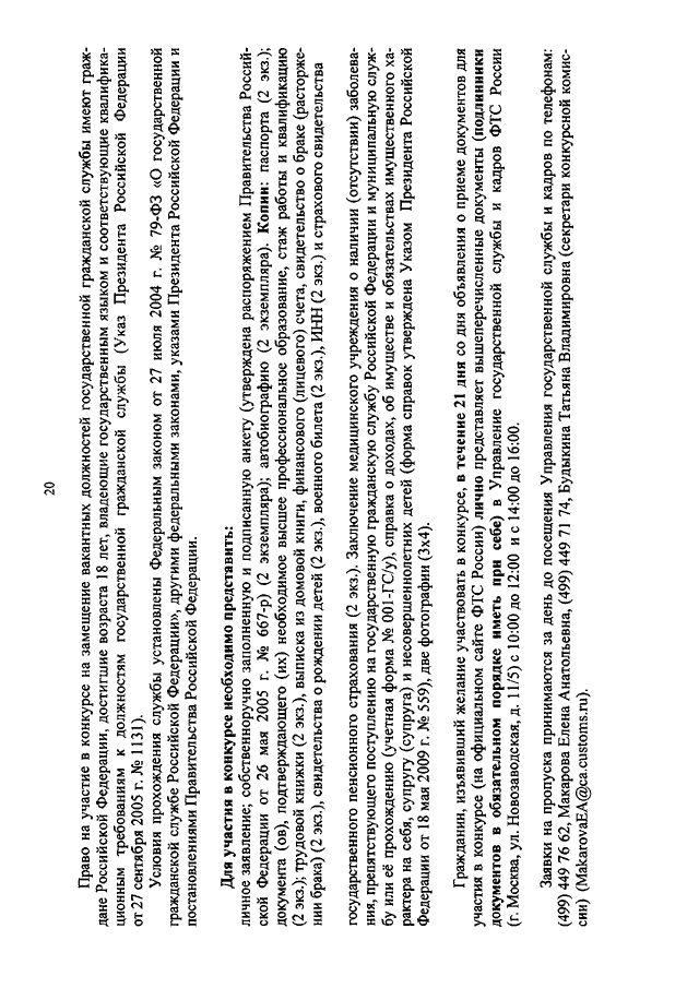 "ОБ ОБЪЯВЛЕНИИ КОНКУРСА НА ЗАМЕЩЕНИЕ ВАКАНТНЫХ ДОЛЖНОСТЕЙ ГОСУДАРСТВЕННОЙ ГРАЖДАНСКОЙ СЛУЖБЫ В ЦЕНТРАЛЬНОМ АППАРАТЕ ФТС РОССИИ"