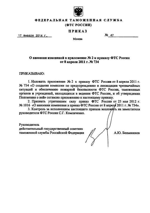 ПРИКАЗ ФТС РФ от 17.01.2014 N 47