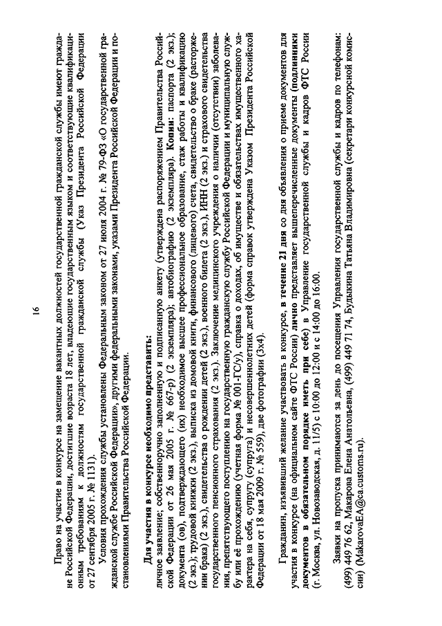 "ОБ ОБЪЯВЛЕНИИ КОНКУРСА НА ЗАМЕЩЕНИЕ ВАКАНТНЫХ ДОЛЖНОСТЕЙ ГОСУДАРСТВЕННОЙ ГРАЖДАНСКОЙ СЛУЖБЫ В ЦЕНТРАЛЬНОМ АППАРАТЕ ФТС РОССИИ"