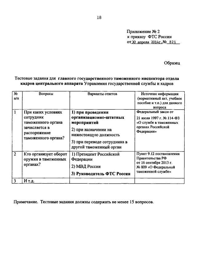 ПРИКАЗ ФТС РФ от 30.04.2014 N 821