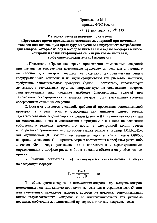 ПРИКАЗ ФТС РФ от 15.05.2014 N 895
