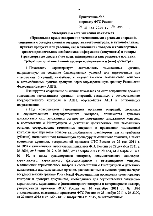 ПРИКАЗ ФТС РФ от 15.05.2014 N 895