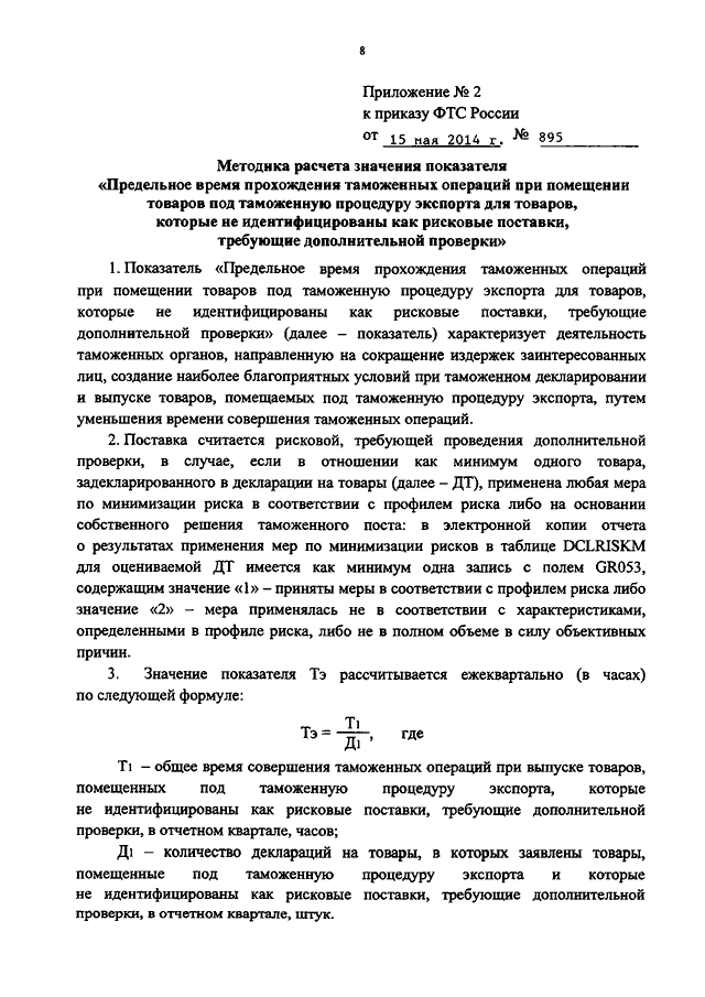 ПРИКАЗ ФТС РФ от 15.05.2014 N 895