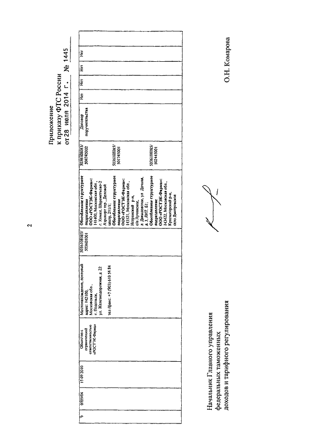 ПРИКАЗ ФТС РФ от 28.07.2014 N 1445
