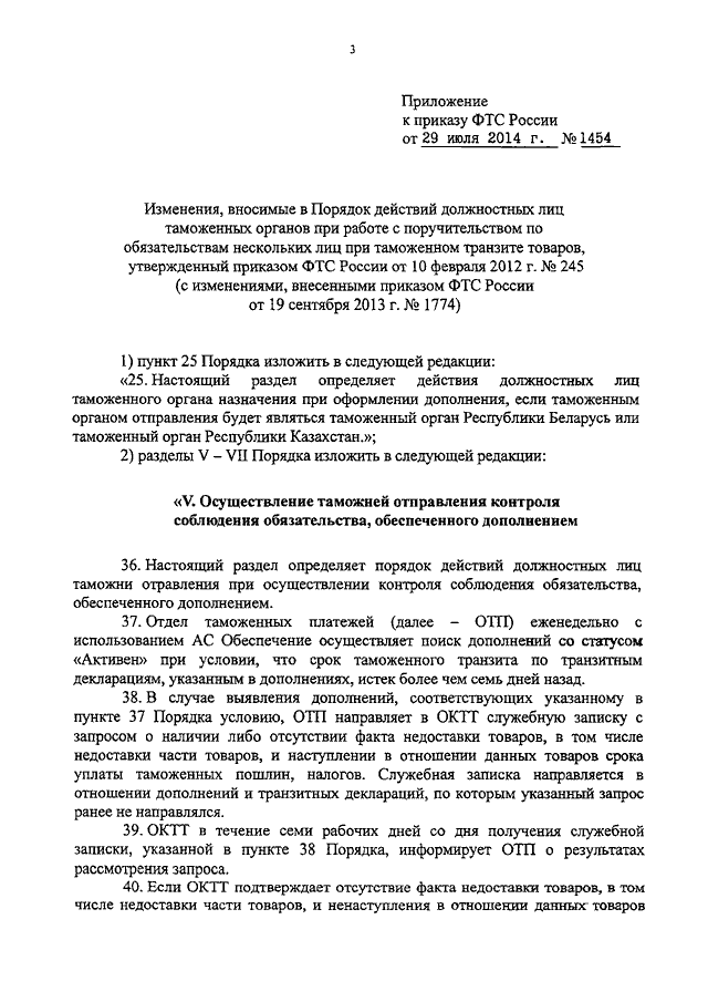 ПРИКАЗ ФТС РФ от 29.07.2014 N 1454