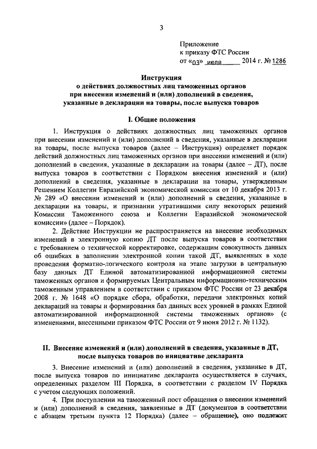 ПРИКАЗ ФТС РФ от 03.07.2014 N 1286