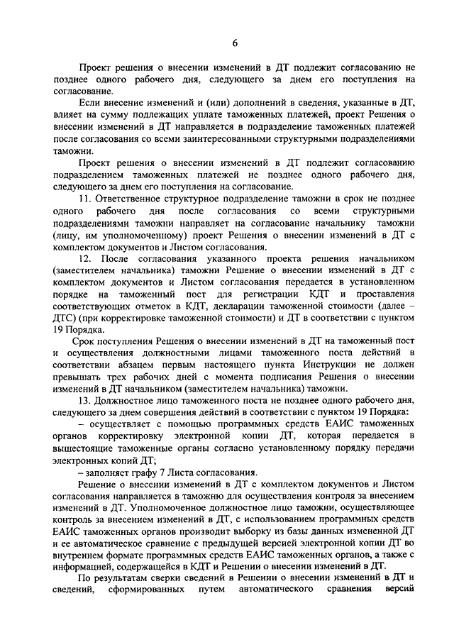 "ОБ УТВЕРЖДЕНИИ ИНСТРУКЦИИ О ДЕЙСТВИЯХ ДОЛЖНОСТНЫХ ЛИЦ ТАМОЖЕННЫХ ОРГАНОВ ПРИ ВНЕСЕНИИ ИЗМЕНЕНИЙ И (ИЛИ) ДОПОЛНЕНИЙ В СВЕДЕНИЯ, УКАЗАННЫЕ В ДЕКЛАРАЦИИ НА ТОВАРЫ, ПОСЛЕ ВЫПУСКА ТОВАРОВ"