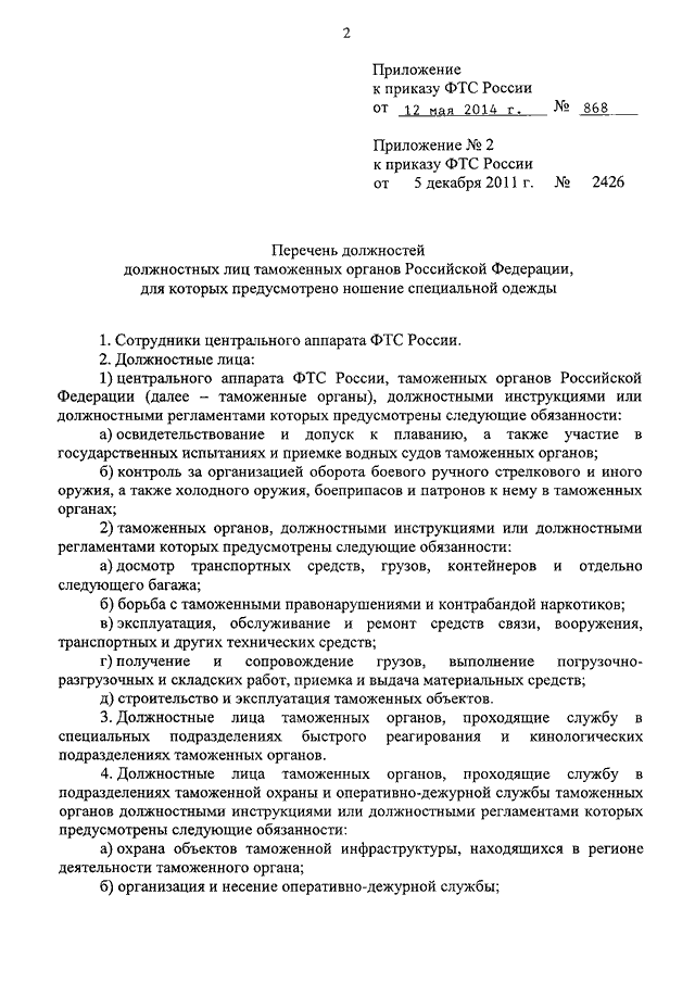 ПРИКАЗ ФТС РФ от 12.05.2014 N 868