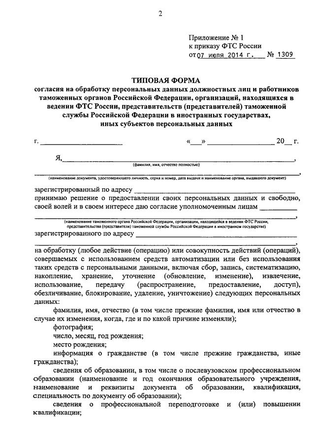 ПРИКАЗ ФТС РФ от 07.07.2014 N 1309