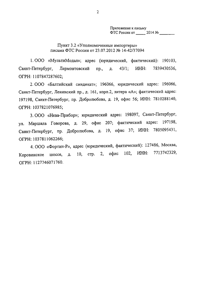 "О ВНЕСЕНИИ ИЗМЕНЕНИЙ В ПИСЬМО ФТС РОССИИ ОТ 23.07.2012 N 14-42/37094"