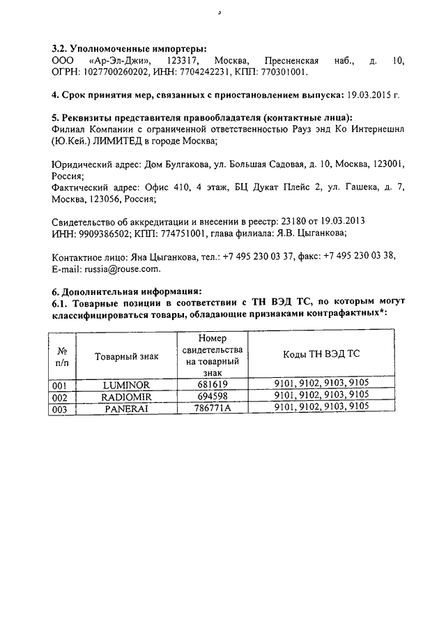 "О ТОВАРНЫХ ЗНАКАХ КОМПАНИИ "ОФФИСИН ПАНЕРАЙ АГ"