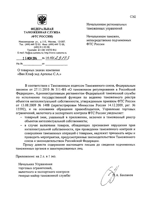 ПИСЬМО ФТС РФ от 25.06.2014 N 14-40/29173