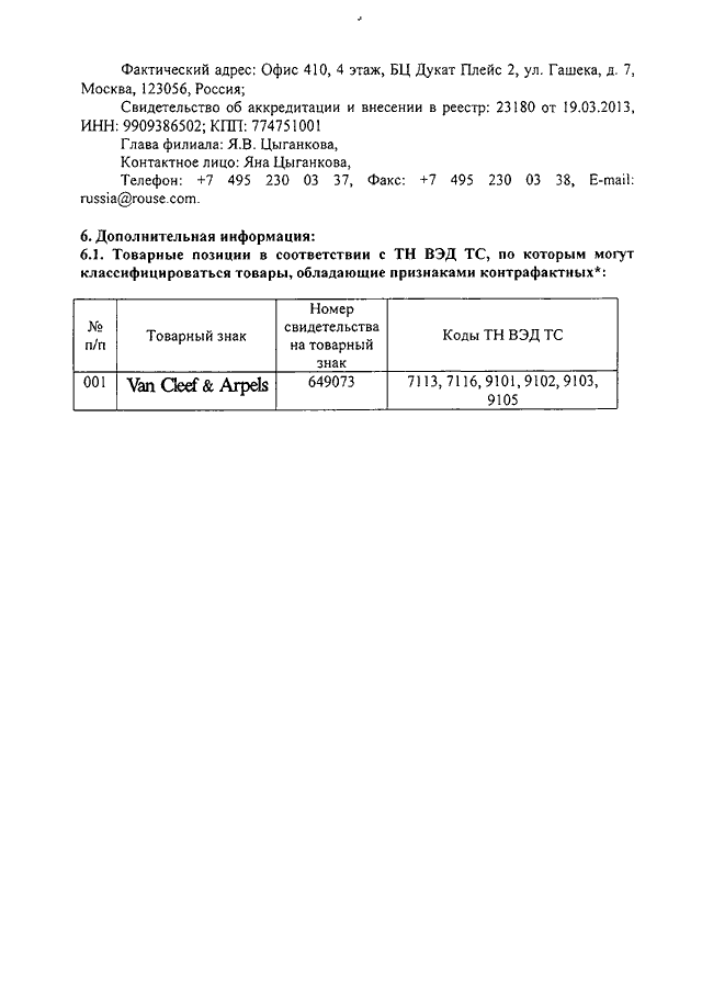 "О ТОВАРНЫХ ЗНАКАХ КОМПАНИИ "ВАН КЛИФ ЭНД АРПЕЛЬС С.А."