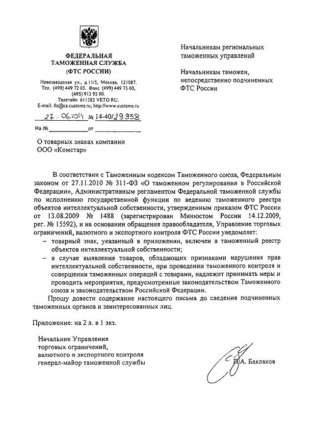 ПИСЬМО ФТС РФ от 27.06.2014 N 14-40/29938
