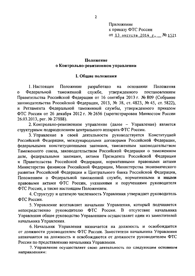 ПРИКАЗ ФТС РФ от 13.08.2014 N 1521
