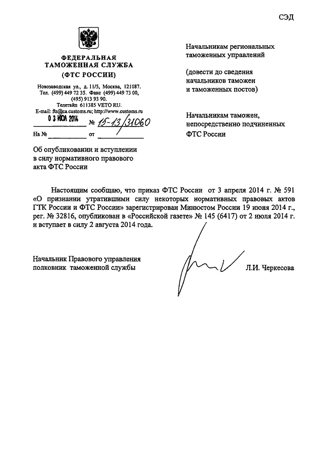ПИСЬМО ФТС РФ от 03.07.2014 N 15-13/31060