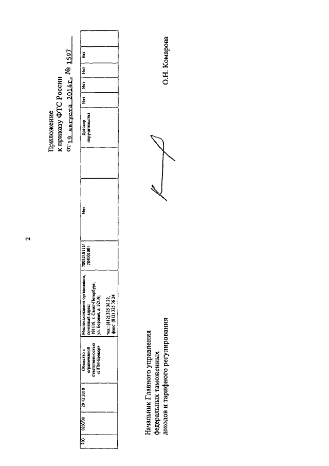 ПРИКАЗ ФТС РФ от 19.08.2014 N 1597
