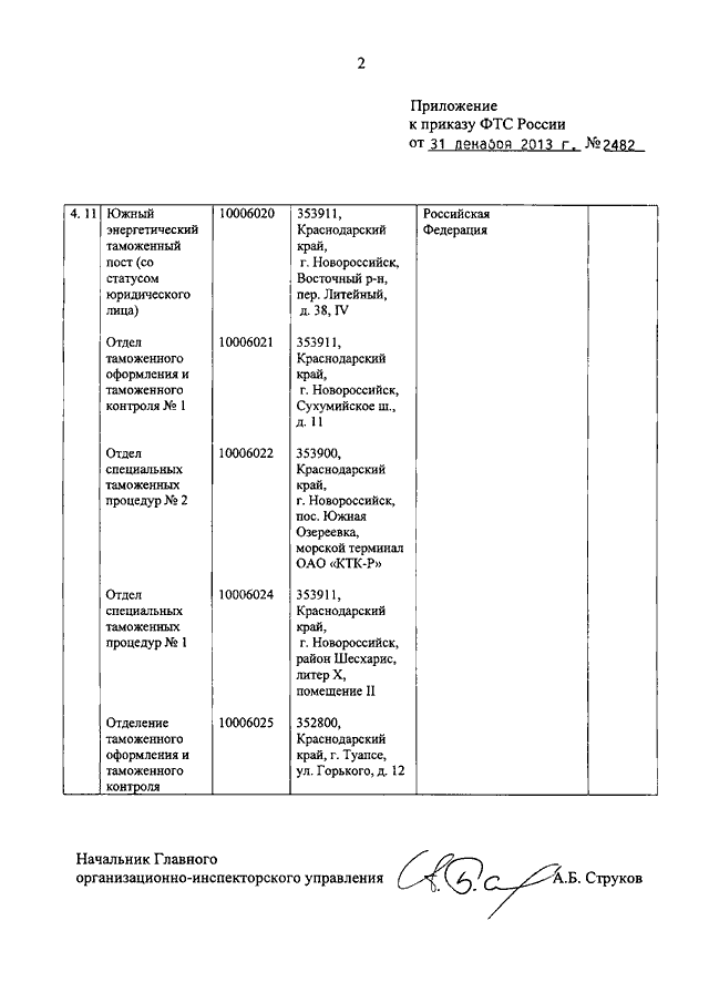 ПРИКАЗ ФТС РФ от 31.12.2013 N 2482