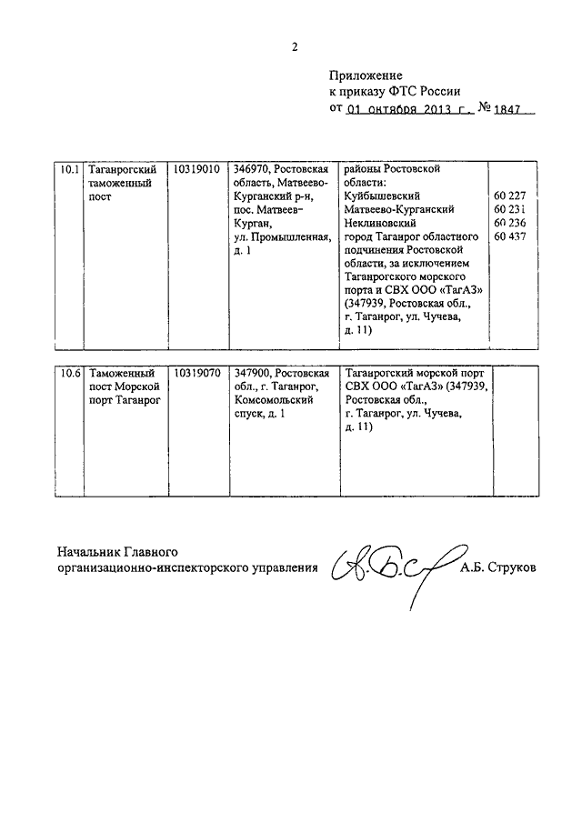 ПРИКАЗ ФТС РФ от 01.10.2013 N 1847