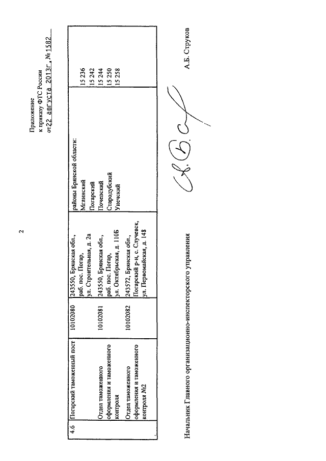 ПРИКАЗ ФТС РФ от 22.08.2013 N 1582