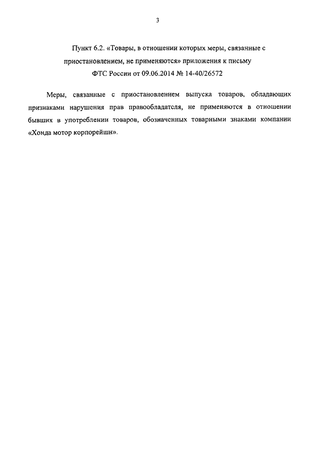 "О ВНЕСЕНИИ ИЗМЕНЕНИЙ В ПИСЬМО ФТС РОССИИ ОТ 09.06.2014 N 14-40/26572 "О ТОВАРНЫХ ЗНАКАХ КОМПАНИИ "ХОНДА МОТОР КОРПОРЕЙШН"