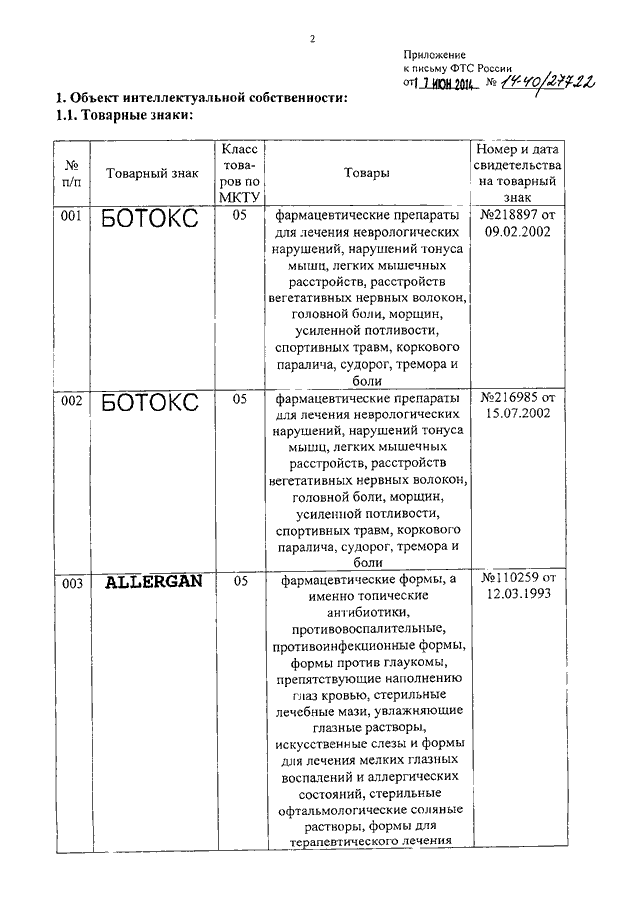"О ТОВАРНЫХ ЗНАКАХ КОМПАНИИ "АЛЛЕРГАН, ИНК., КОРПОРАЦИЯ ШТАТА ДЕЛАВЭР"
