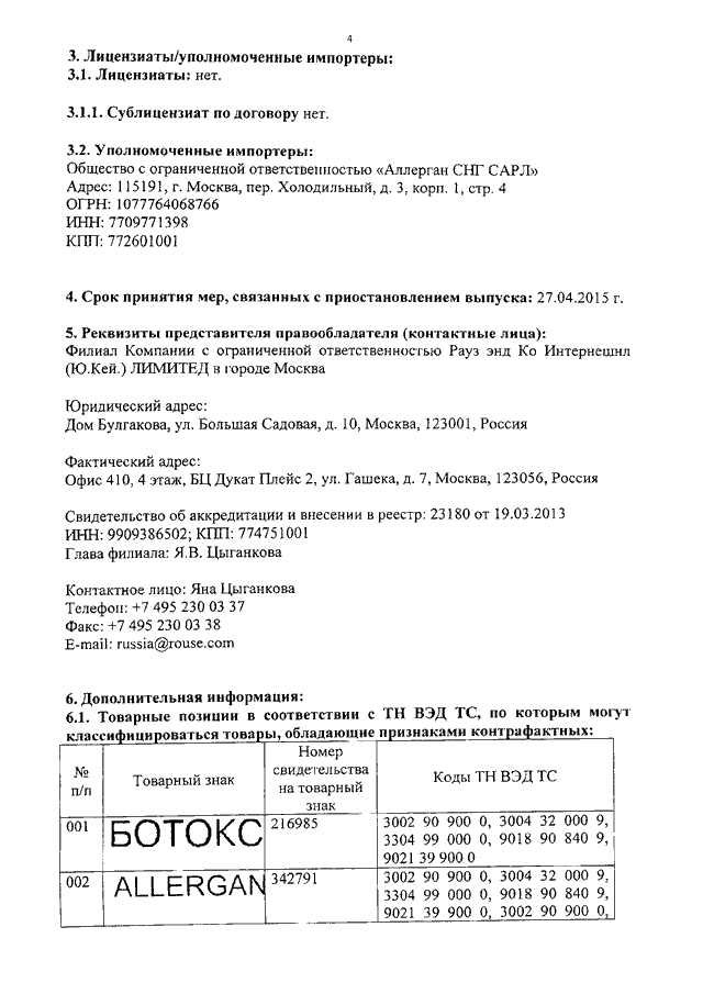 "О ТОВАРНЫХ ЗНАКАХ КОМПАНИИ "АЛЛЕРГАН, ИНК., КОРПОРАЦИЯ ШТАТА ДЕЛАВЭР"