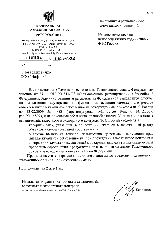 ПИСЬМО ФТС РФ от 16.06.2014 N 14-40/27486