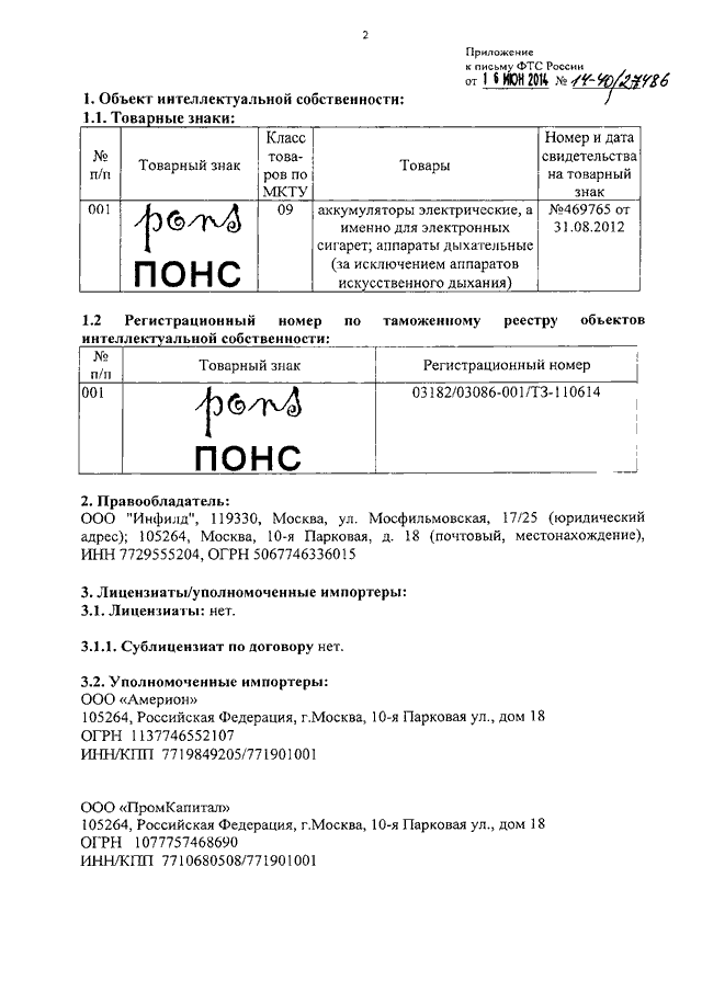 "О ТОВАРНЫХ ЗНАКАХ ООО "ИНФИЛД"