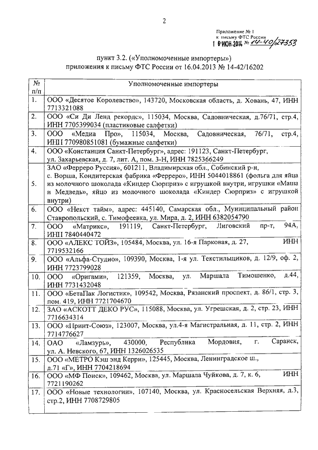 "О ВНЕСЕНИИ ИЗМЕНЕНИЙ В ПИСЬМО ФТС РОССИИ ОТ 16.04.2013 N 14-42/16202 "О ТОВАРНЫХ ЗНАКАХ ООО "МАША И МЕДВЕДЬ"