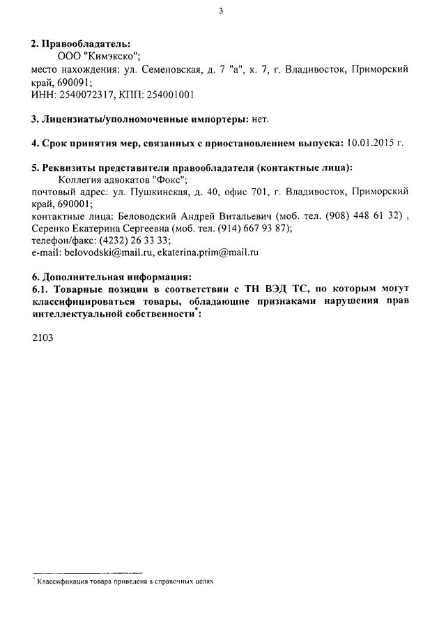 "О ТОВАРНОМ ЗНАКЕ ООО "КИМЭКСКО"