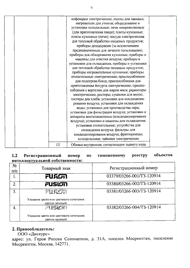 "О ТОВАРНЫХ ЗНАКАХ "FUSION"